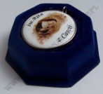 Medalion wykonany jest ze szlachetnej, białej porcelany, zdobiony farbami ceramicznymi wpalonymi w szkliwo. Technologia "porcelain" zapewnia, że medalion jest odporny na ścieranie, a kolory zachowują trwałość na pokolenia.